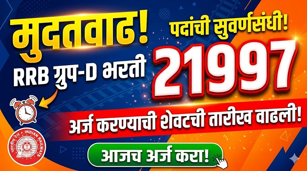 मुदतवाढ! RRB ग्रुप-D 21997 पदांची सुवर्णसंधी – आजच अर्ज करा! RRB Group D Bharti 2026