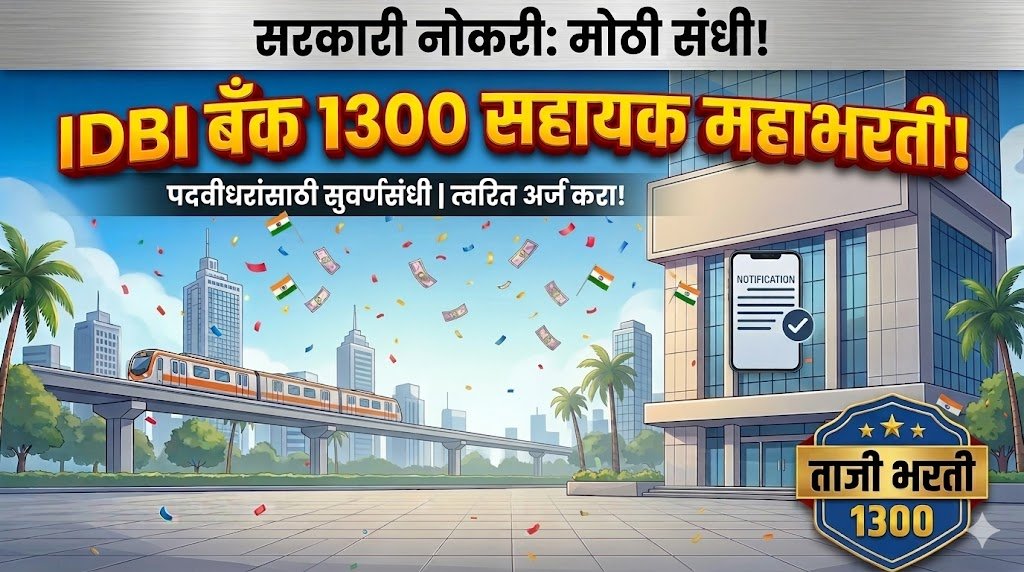 IDBI बँकेत 1300 पदांसाठी मोठी भरती; नोकरीची सुवर्णसंधी – त्वरित अर्ज करा! IDBI Bank Bharti 2026